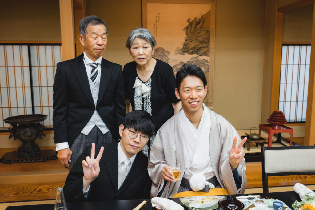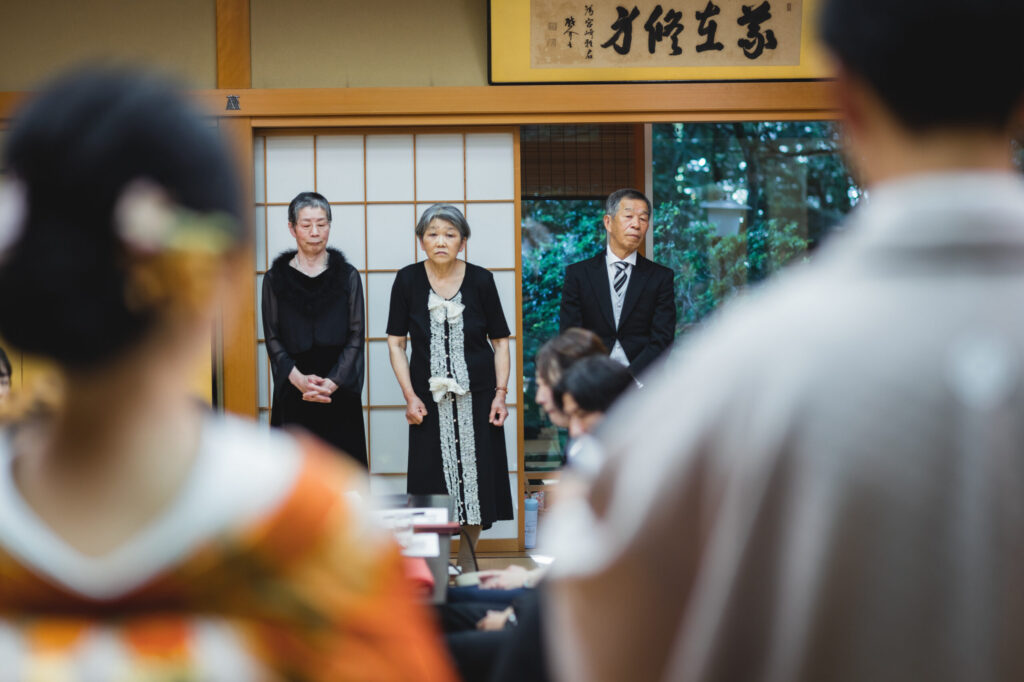 雅楽の音色が静かに響く中、家族の温かなまなざしに見守られながら執り行われた神前式