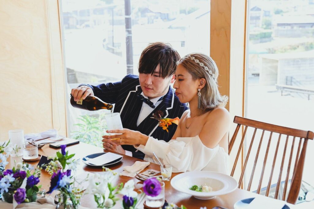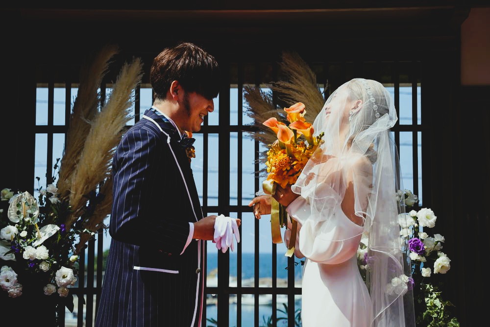 海や夏を思わせる色彩と演出、そしておふたりらしい遊び心と大人のセンスが光った一日。