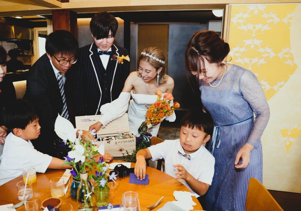 パーティーの中盤では、海外ウェディングでも人気の「ワインBOXセレモニー」を取り入れました。