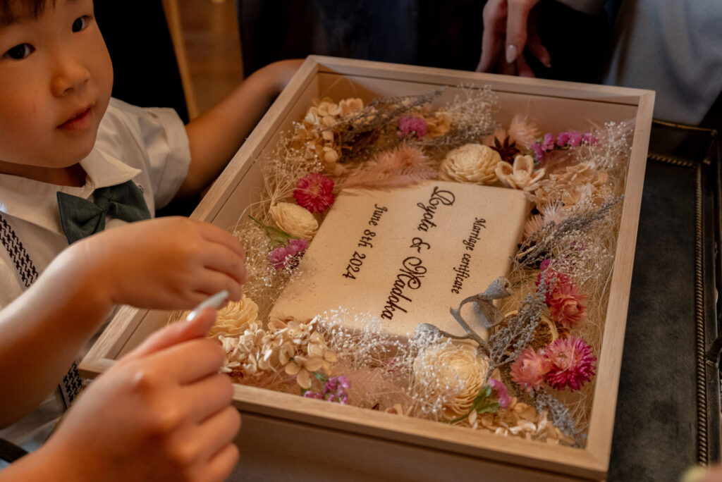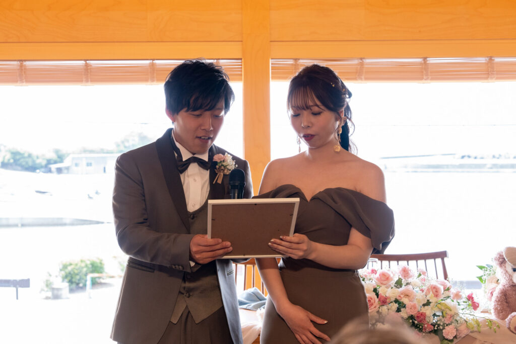 挙式は行わなかったけれど、 私たちにとって大切な友人たちの前で、 誓いの言葉と指輪の交換を。