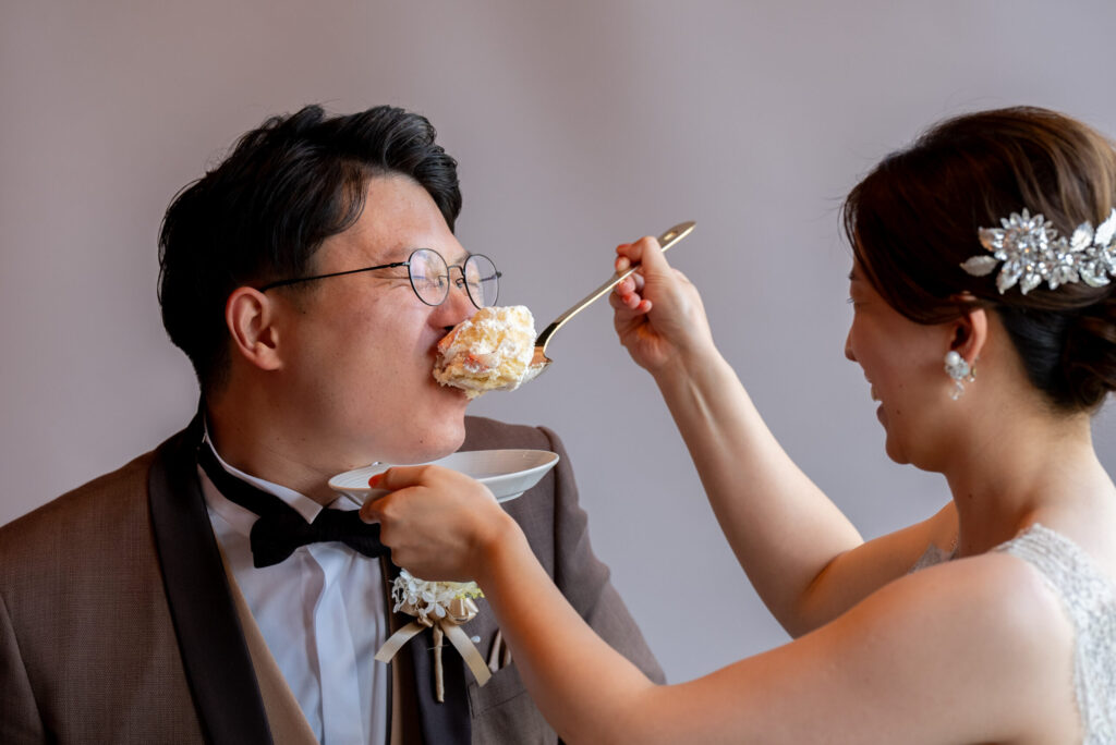 新郎様が何回かに分けて食べる姿に会場も盛り上がりに賑やかな雰囲気に包まれました。