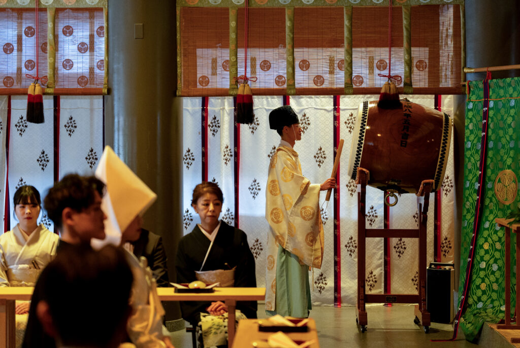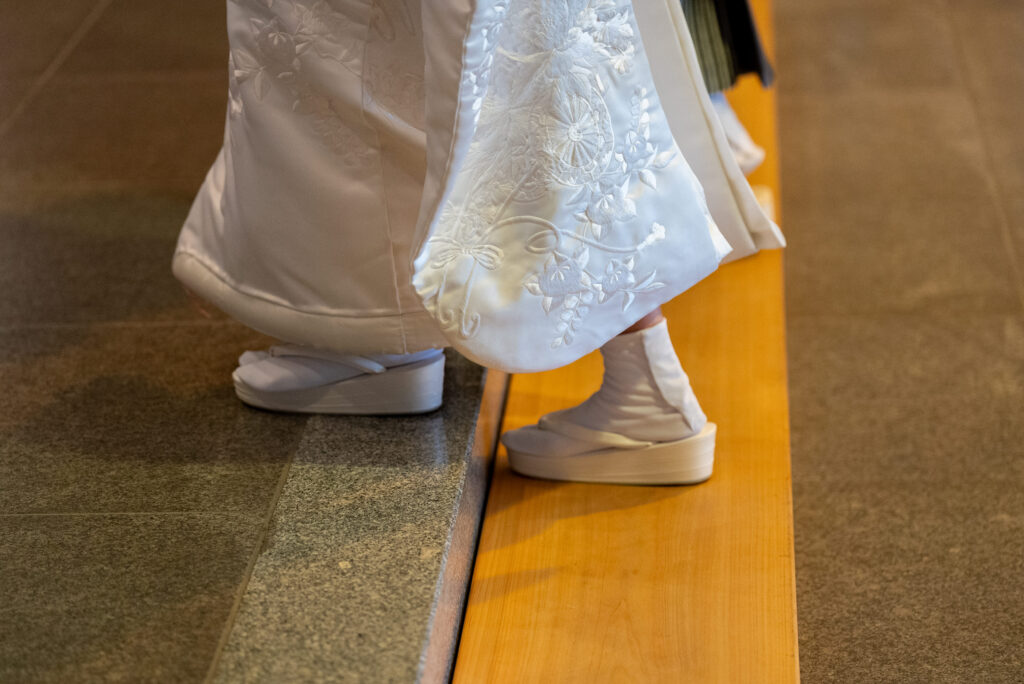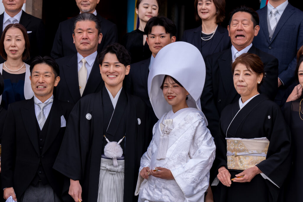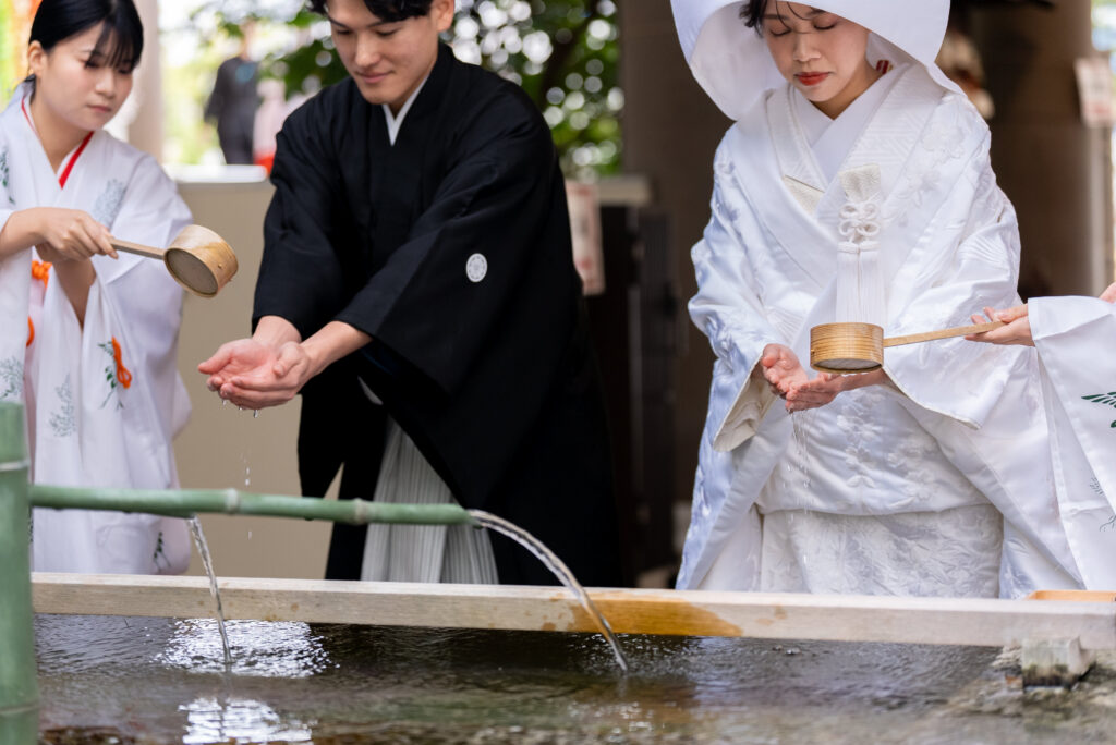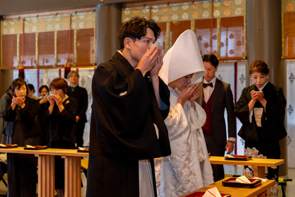 白無垢と紋付袴に身を包み、三三九度の盃を交わすその瞬間、