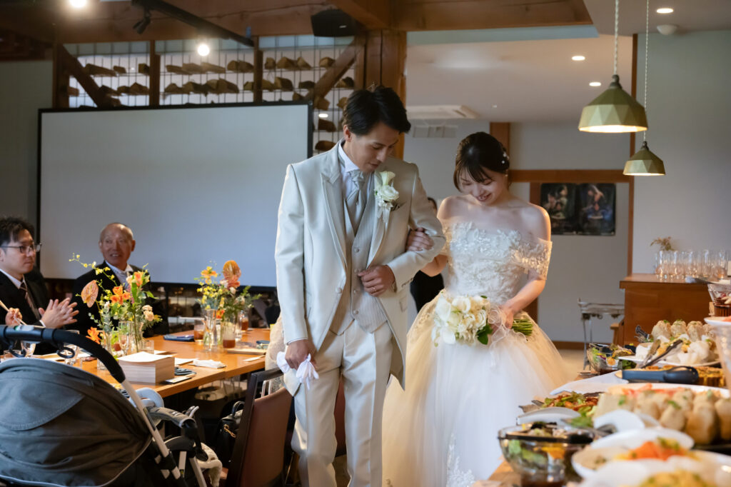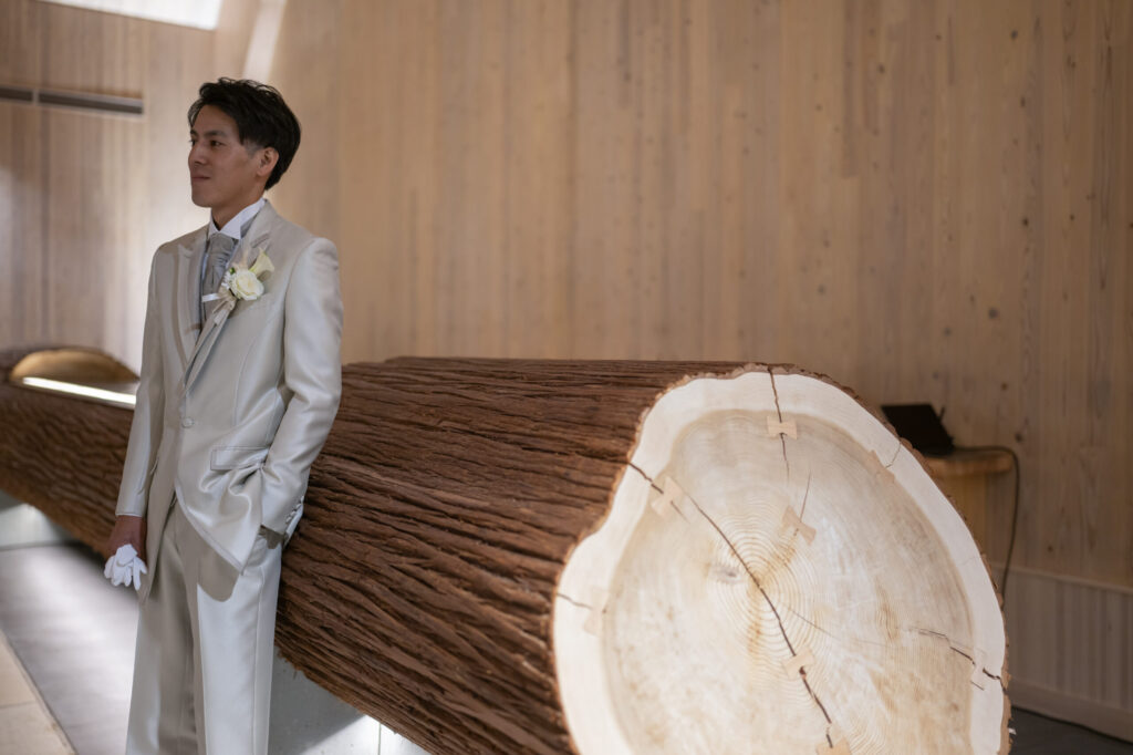 新郎様は、臥龍棟内にある杉のテーブルを自ら伐採されたご縁もあり