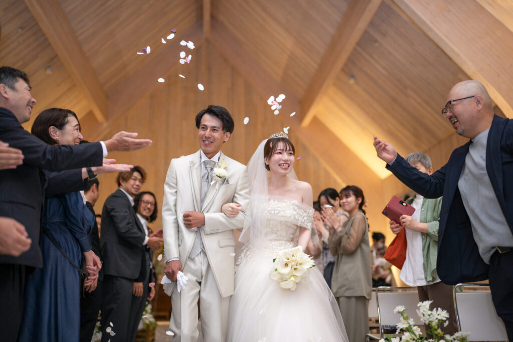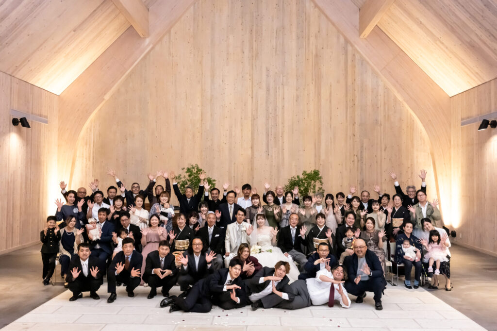 挙式にはご友人や会社の方も参列し 笑顔と拍手に包まれた賑やかな時間に