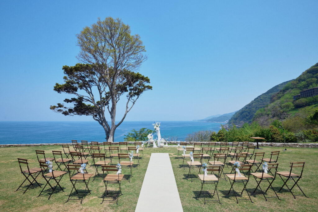 海風が祝福を運ぶようなこの場所で、 新郎新婦もゲストも心からくつろぎ、 特別な一日が